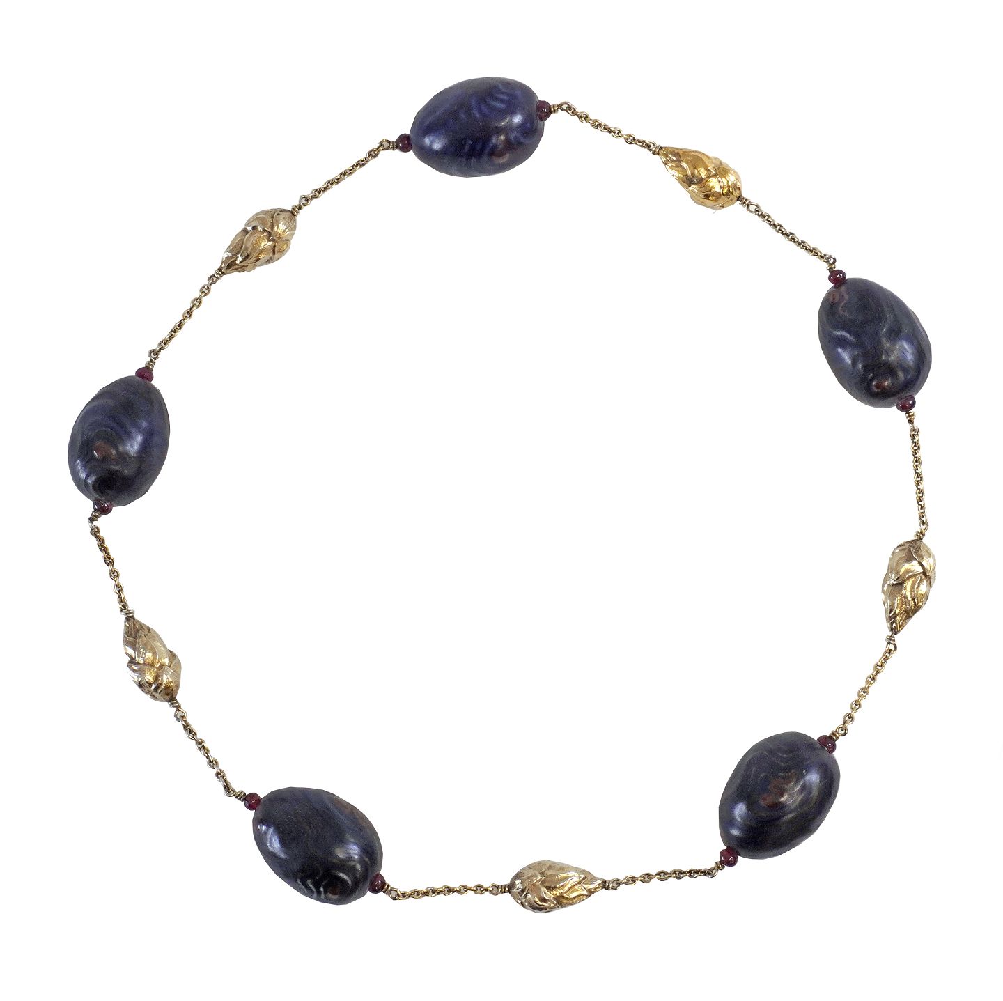 Rare necklace by Arje Griegst, Royal Copenhagen, and gilt sterlingsilver by A. Michelsen, Copenhagen. Signed. L: 65cm