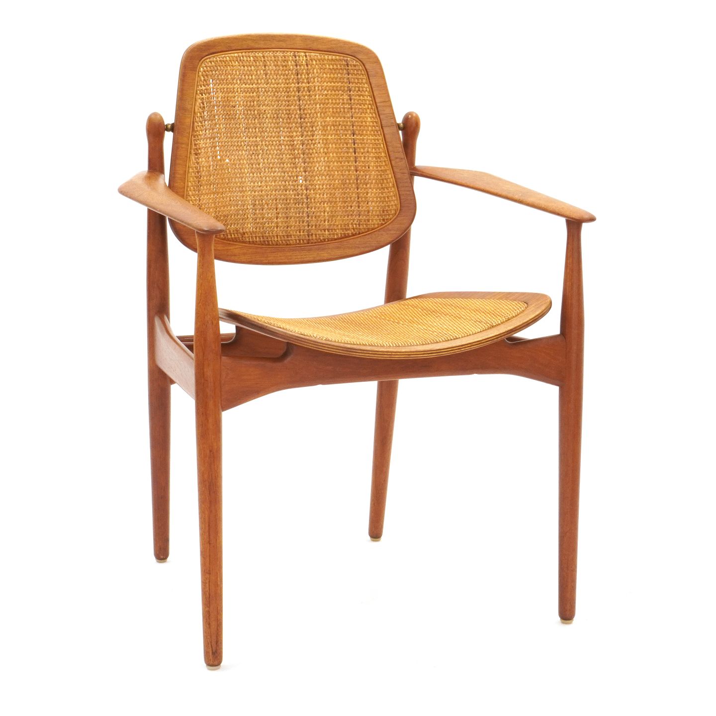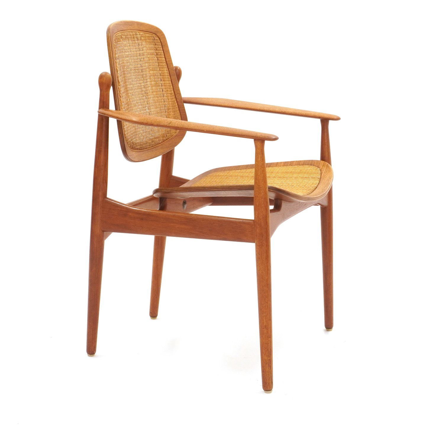 Arne Vodder armstol FD 186, teak og sjeneflet, fremstillet af France and Daverkosen 1956-57