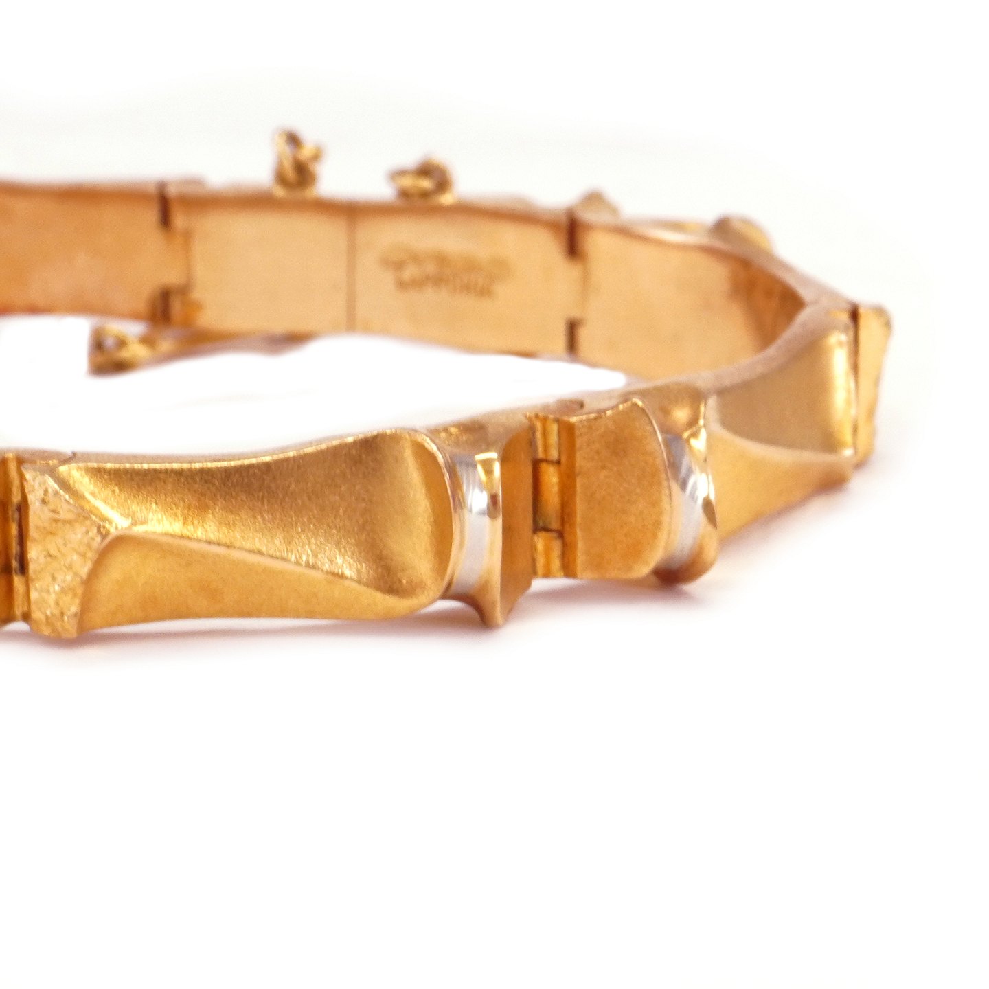 Lapponia 18kt guld leddelt armlænke med kasse- og sikkerhedslås og -kæde år 1980