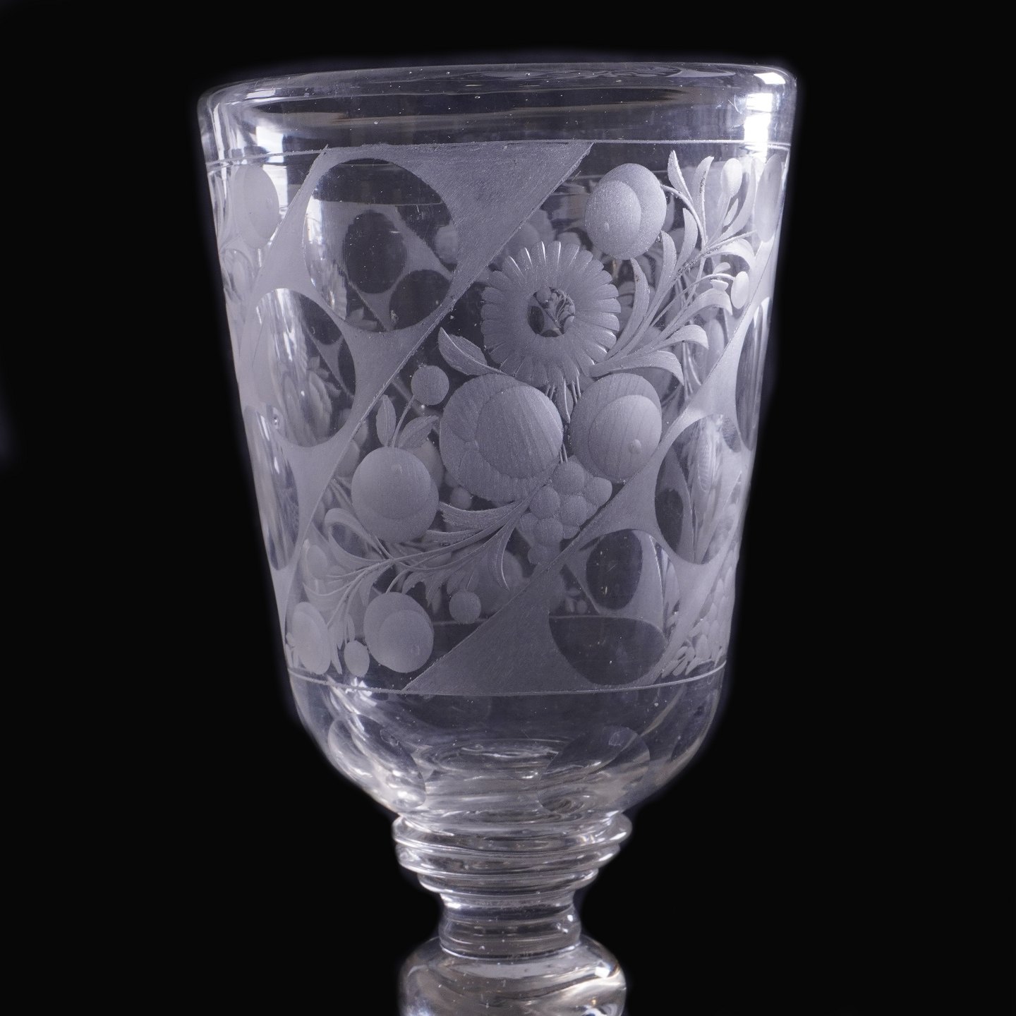 Tysk glaspokal med indgraveringer i form af stiliserede blomster