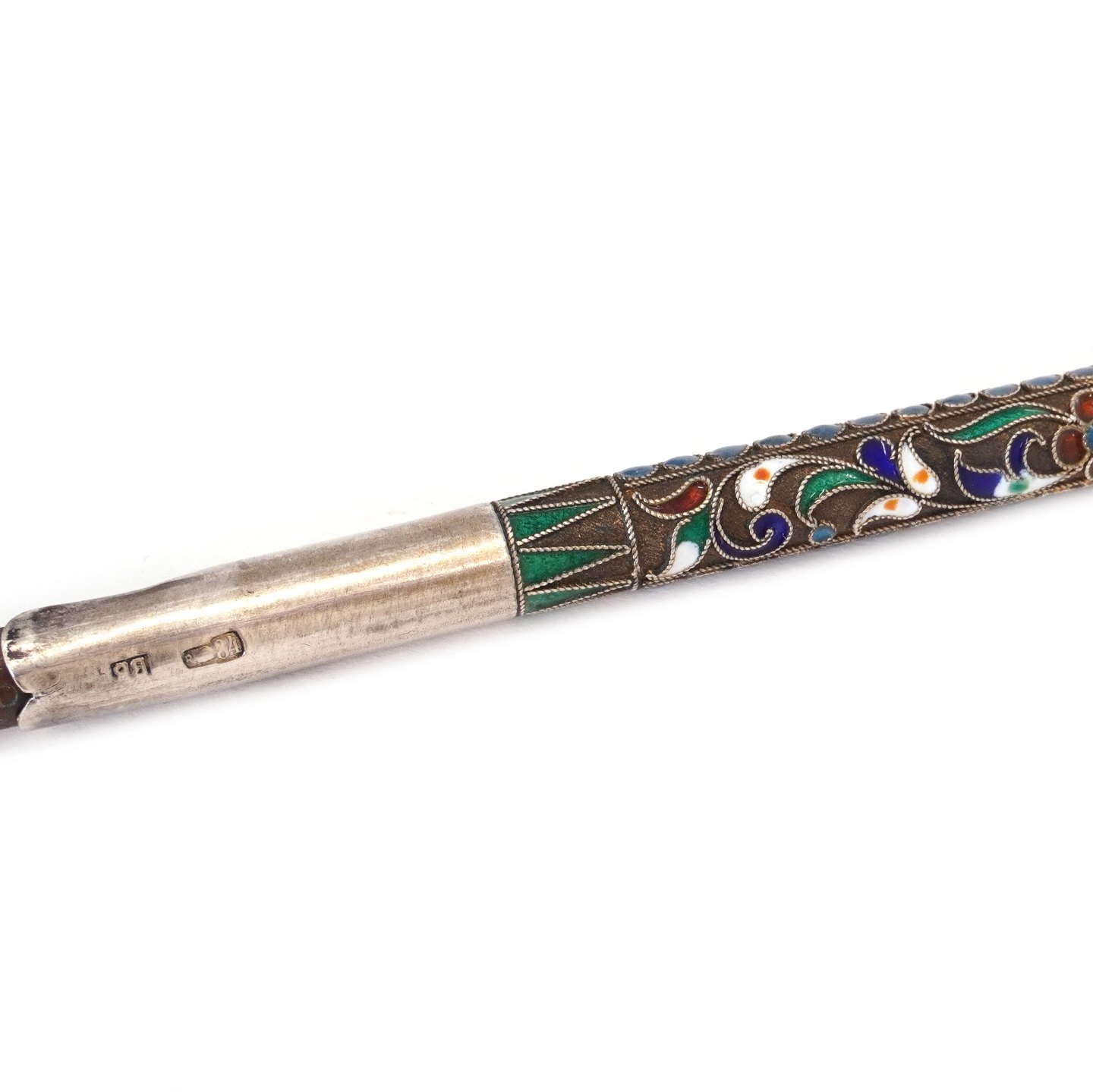 Russisk fyldepen i sølv prydet med cloisonné arbejde