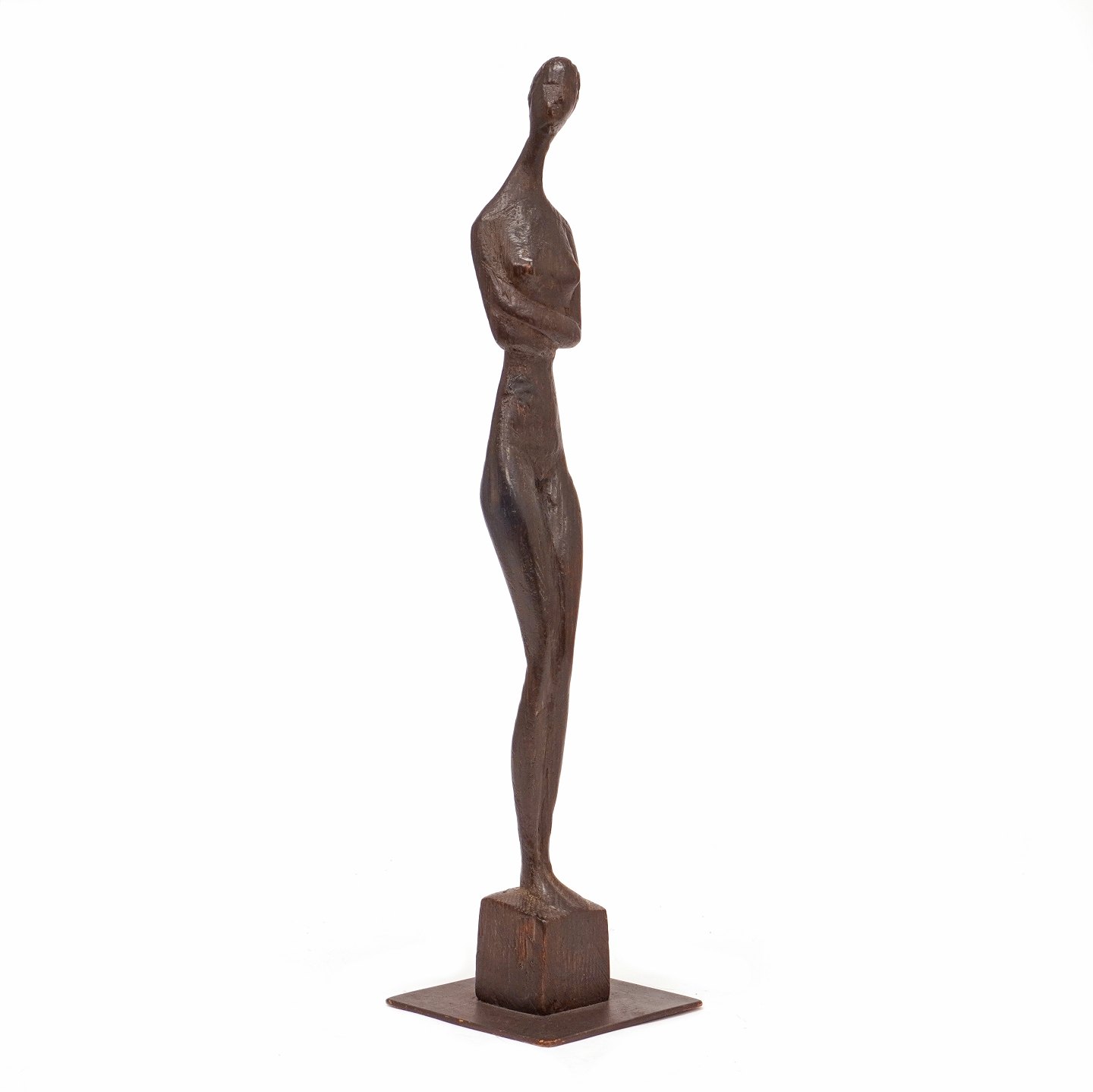 Otto P.-figur. Otto Pedersen, 1905-95, kvindefigur udført i træ