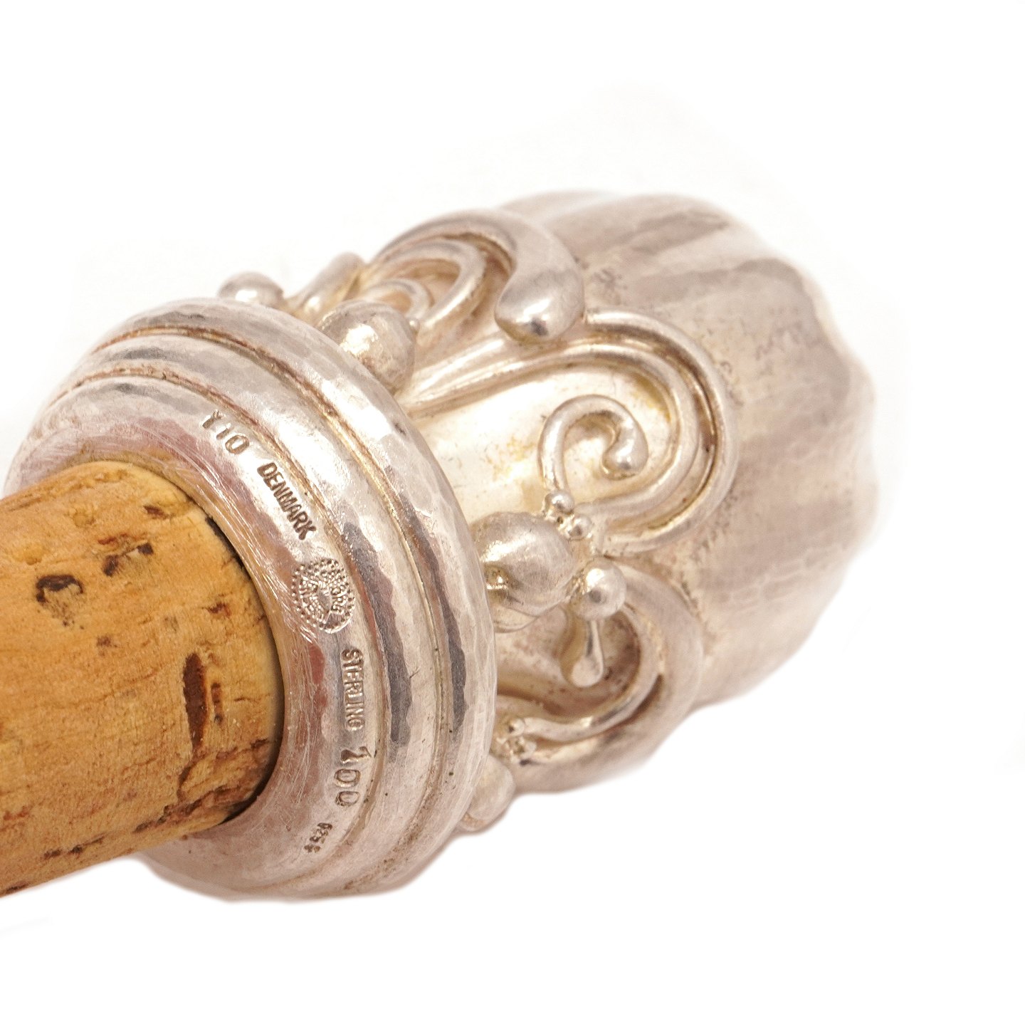 i let hammerslået sterlingsølv med snoet stamme.