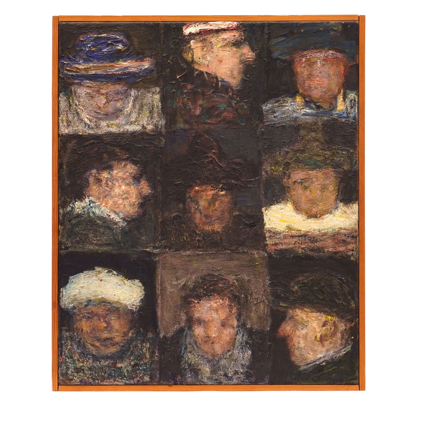 Peter Martensen, b. 1953, oil on canvas. "9 clowns" signed and dated 1978. Visible size: 55x45cm. With frame: 57x47cm