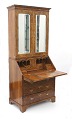 Nøddetræsfineret chatol med orignalt, facetslebet spejlglas i dørene. Skriveklap med læderindlægning.