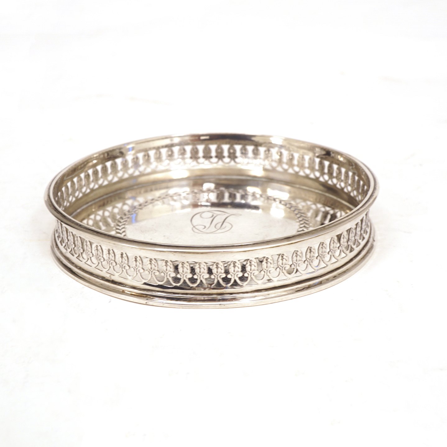 Coaster/flaskebakke i sølv. Stemplet