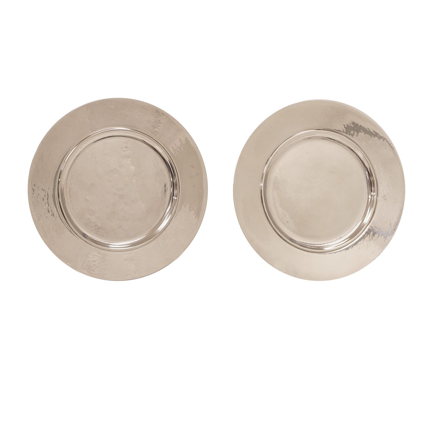 Johan Rohde for Georg Jensen: Et par små sidetallerkner i let hammerslået sterlingsølv
