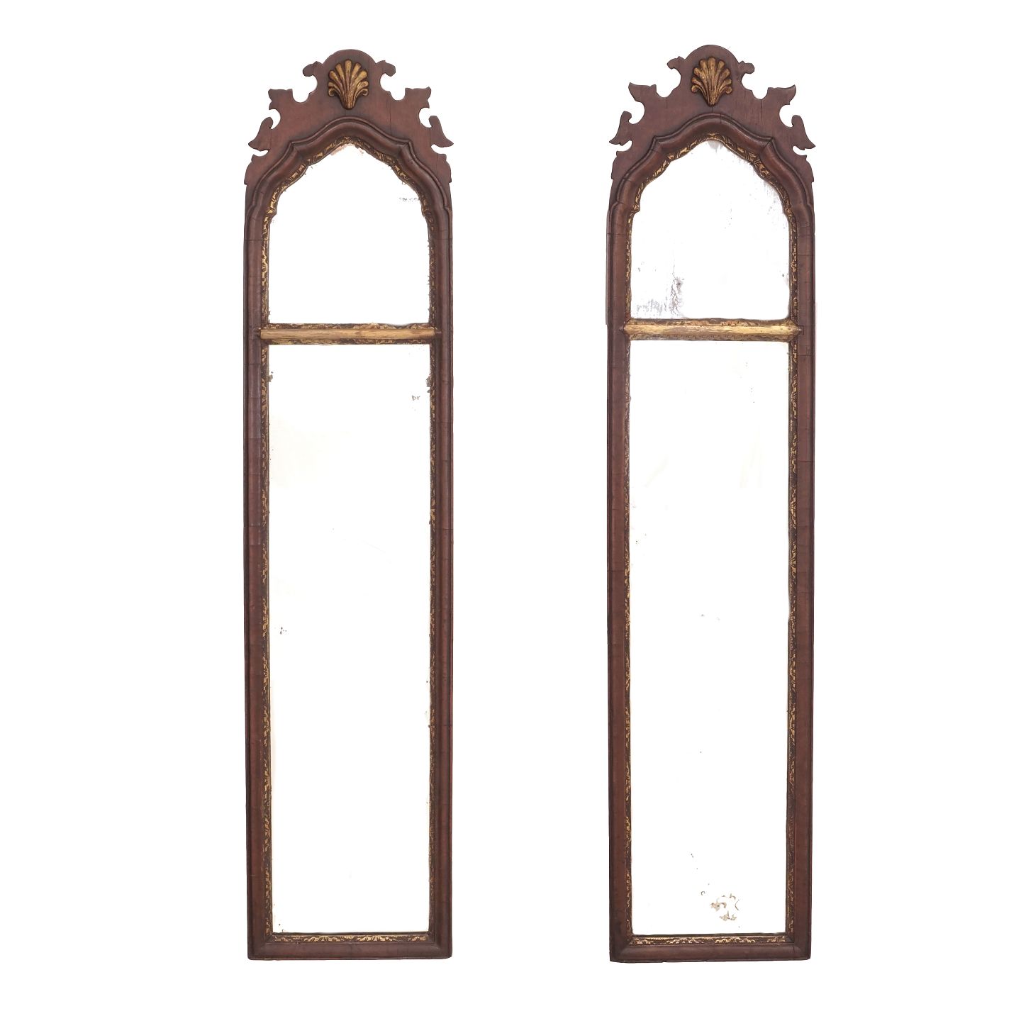 Et par barok pillespejle udført i mahogni med forgyldninger. Nordtyskland ca. år 1750. H: 90cm. B: 21cm