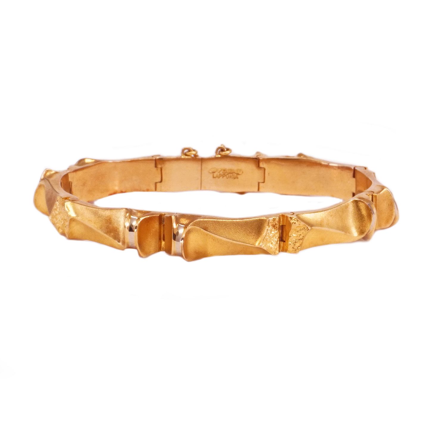Lapponia 18kt guld leddelt armlænke med kasse- og sikkerhedslås og -kæde år 1980