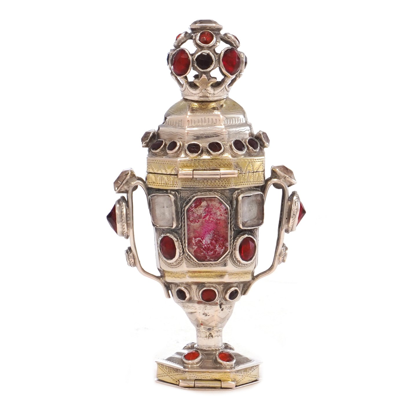 Hovedvandsæg i delvist forgyldt sølv udført i meget kraftig kvalitet af Paul Hansen, Tønder, 1785-1830. H: 12cm
