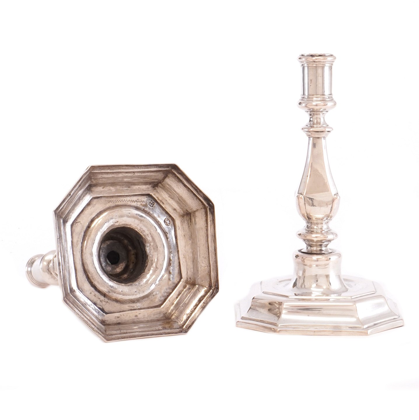 Et par barok sølvstager af Müller, Berlin, ca. år 1750. H: 18cm