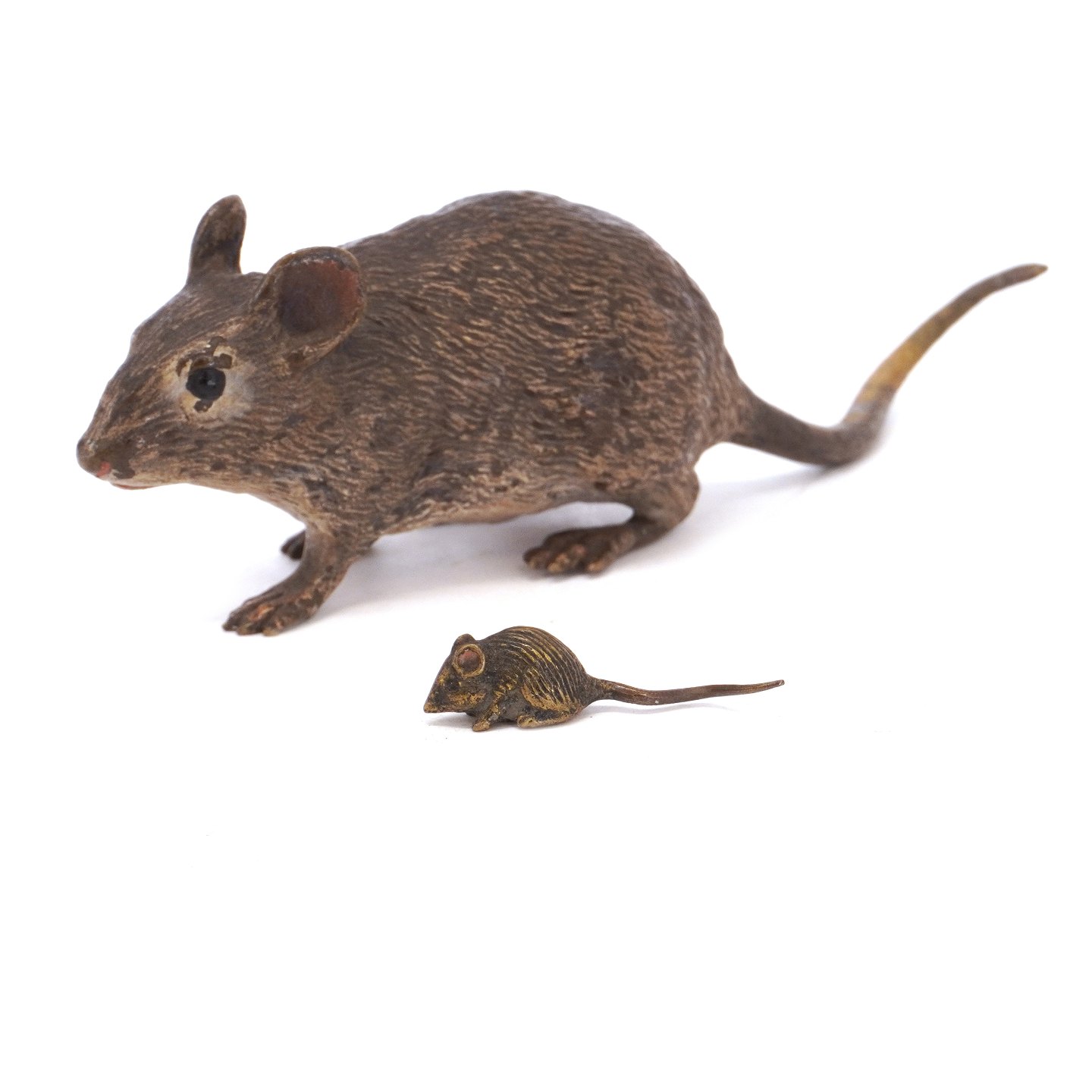 Wienerbronze i form af mus med unge. Stemplet. Mus L: 11cm. Unge L: 3cm