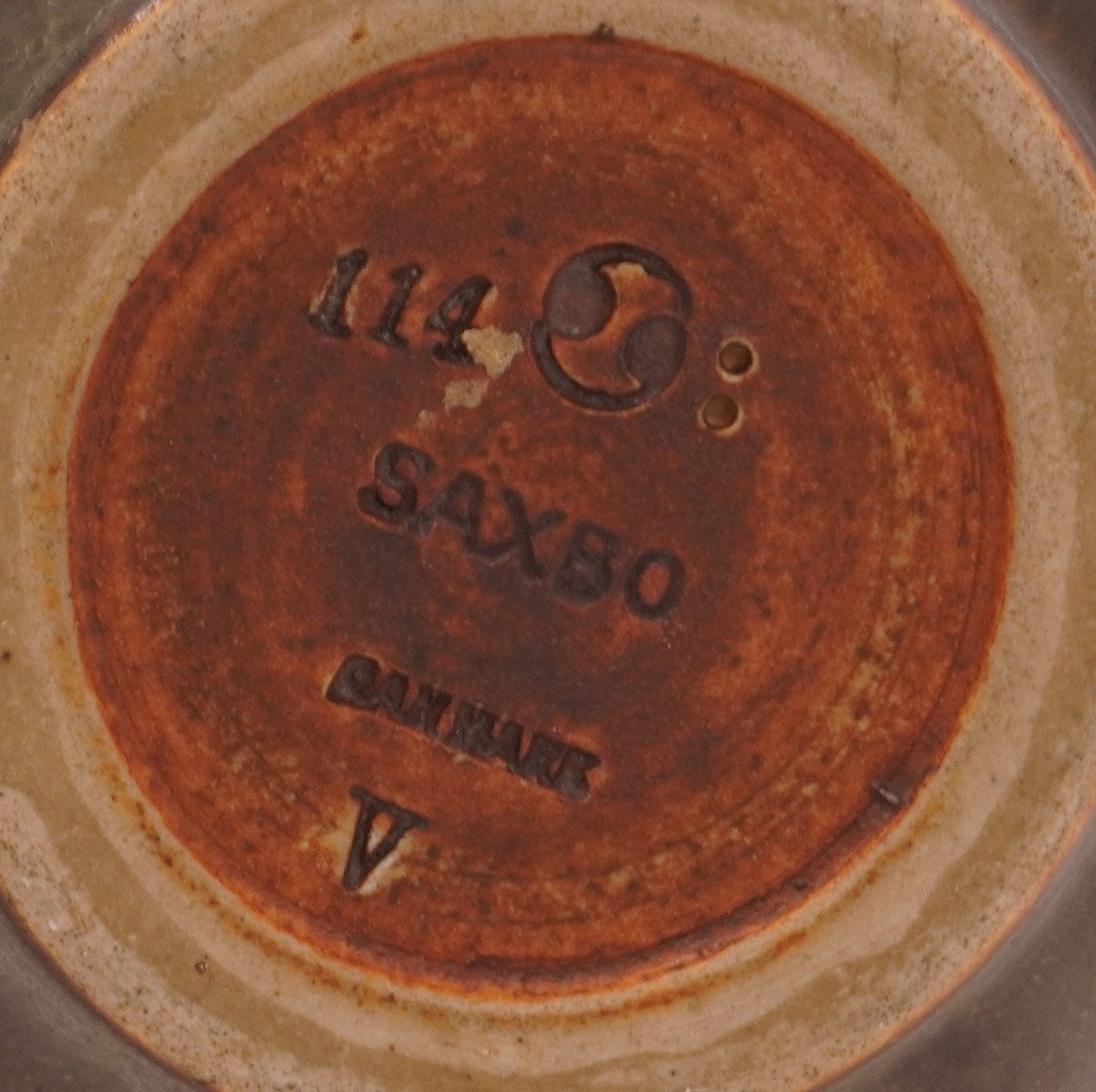 Saxbo stentøjs vase med mørk spættet glasur signeret Saxbo